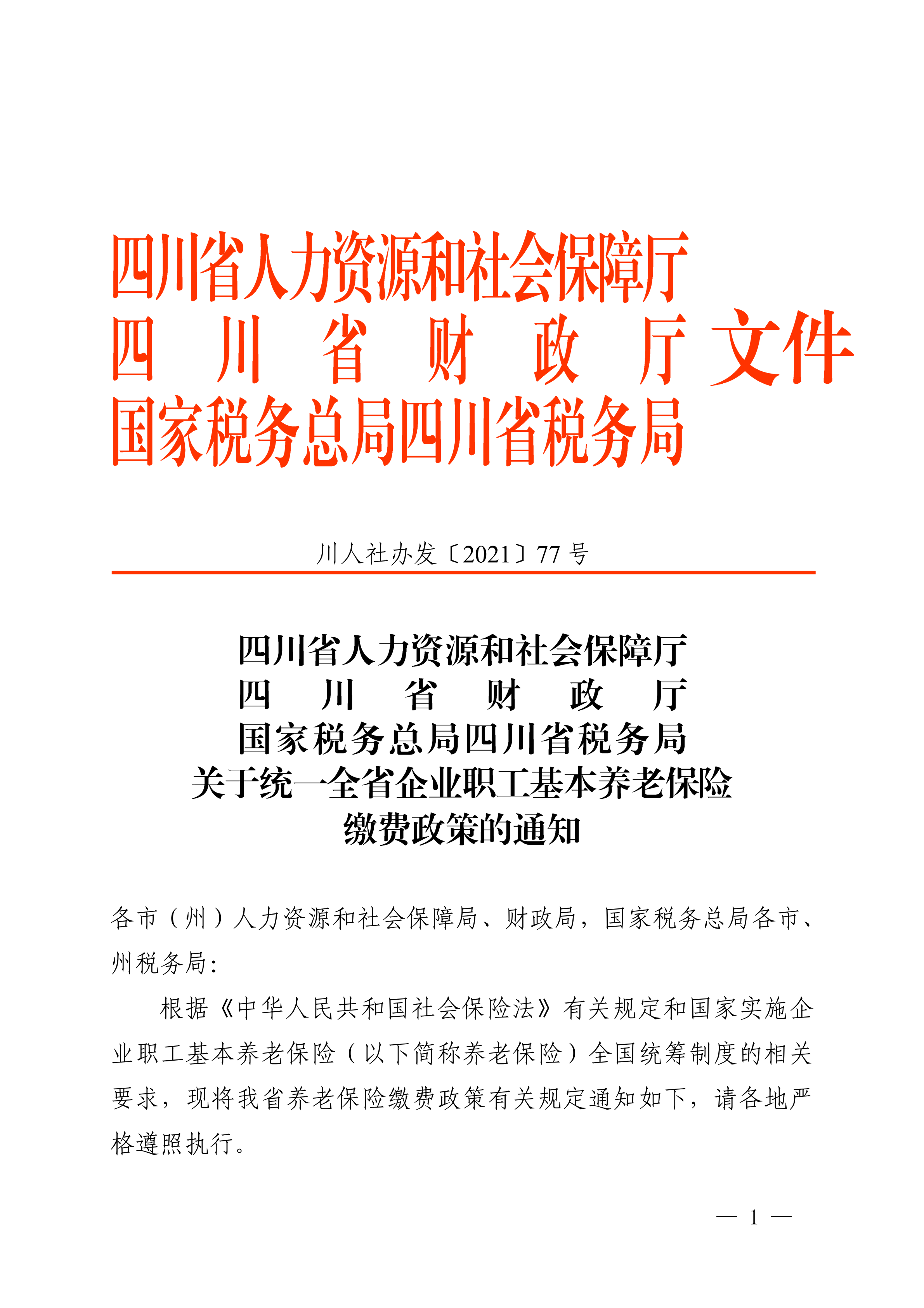 關(guān)于統(tǒng)一四川省企業(yè)職工基本養(yǎng)老保險(xiǎn)繳費(fèi)政策的通知